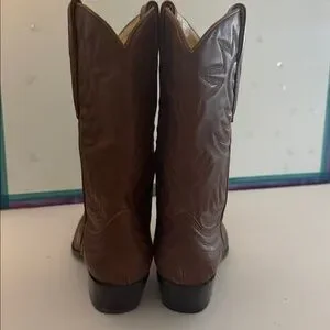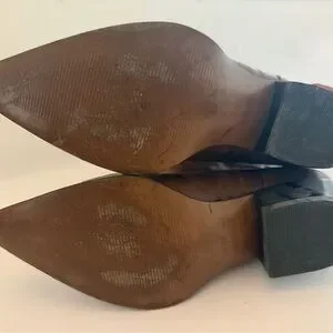Brown heeled boots by Guess. Sleek design with leather upper. Perfect for any outfit. Comfortable and in good condition. A few flaws in the inside of the boot by size area and some wear on sole.