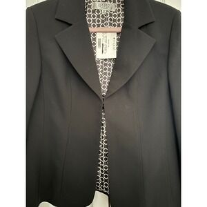 Classic, polished Kasper blazer in timeless black—brand new with tags and originally retailing for $119. This beautifully tailored jacket features a sharp notch lapel and a hook-and-eye front closure for a clean, streamlined look.
