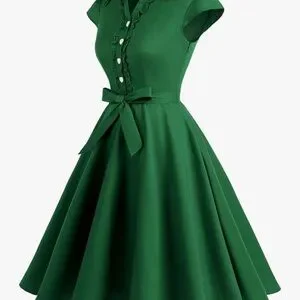 Featuring a flattering A-line silhouette, heart shaped buttons and removable belt. 38” long.