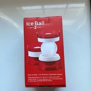 Set of 2 red ice ball molds by Zoku. Perfect for crafting large ice spheres. New in box. (Box has some wear.)
