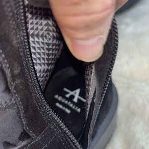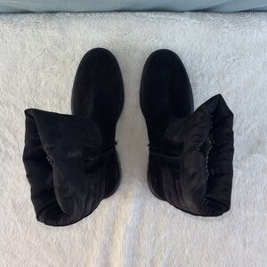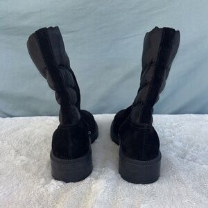 AQUATALIA Women sz 11 Lori Boots Black Suede Leather Camouflage Suede Quilted Puffer