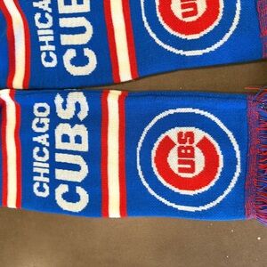 This classic scarf features the iconic circular Cubs logo and "CHICAGO CUBS" in bold block lettering. The design is double-sided, so it looks great from any angle.
