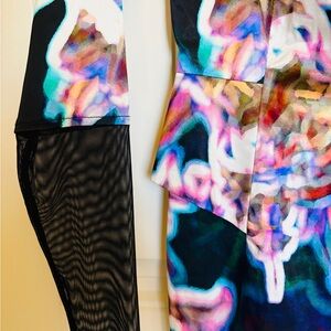 Stunning MILLY abstract sheath dress crafted from premium Italian fabric for exceptional quality and structure. This modern designer piece features a vibrant, artistic print with tailored shaping that flatters the silhouette beautifully.