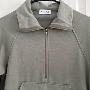 GILLI Half-Zip Fleece-Lined Pullover Sweatshirt — XS — Sage Green
