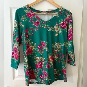 The Pioneer Woman long sleeve floral green v-neck shirt small oversized