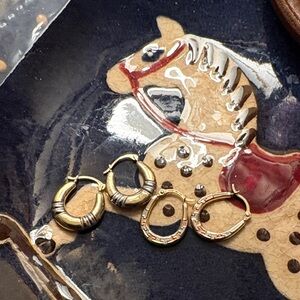 Bundle (2) pairs of solid gold hoop earrings