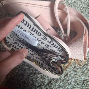 New with tags Juicy Couture Heart Coin Pouch, Pink Clay Velour with Rhinestone Logo.