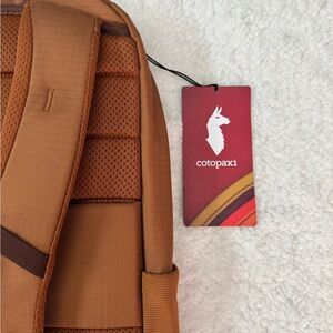 Bold orange backpack by Cotopaxi. Ideal for daily use. Features durable design and ample storage.