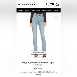 new, never worn agolde freya jean high rise slim sz 23 color quiver