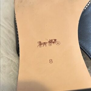Match your casual outfits and formal styles with the COACH Claire Leather Skimmer pumps. These flat shoes are made of a faux leather lining and leather footbed. The leather upper of these pumps features an adjustable slingback strap with buckle closure. These leather flats work for different occasions. Pointed toe design. Rubber outsole. Great pre-loved condition Worn once. Size eight.