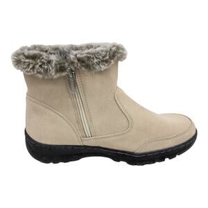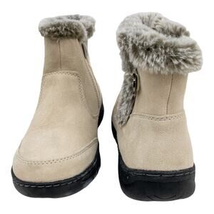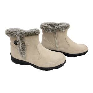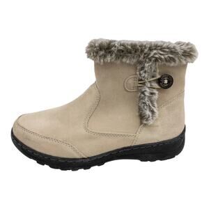 Khombu Cream Tan Water Resistant Suede Fur Winter Ankle Boots Womens size 8 9 10