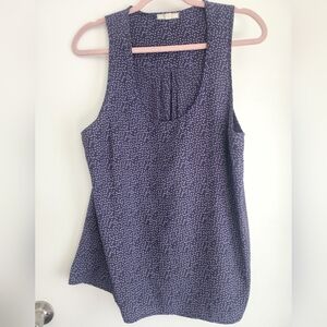 Stylish sleeveless polka dot blouse by Pleione. Features a scoop neckline. Perfect for casual or office wear.