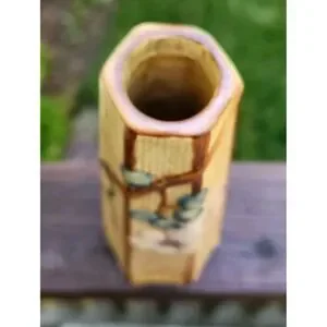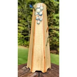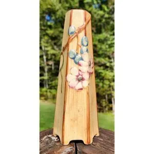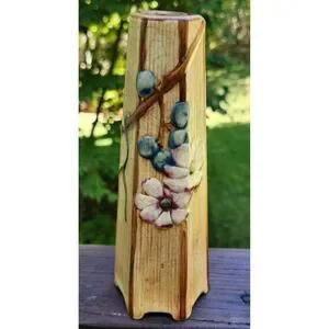 Antique Weller Pottery Klyro Hexagon Bud Vase Blue Grapes Pink Red Flowers 7.5"