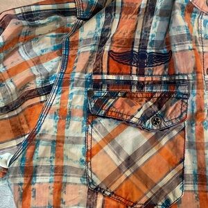 Affliction vintage Orange and Blue Plaid Casual Shirt