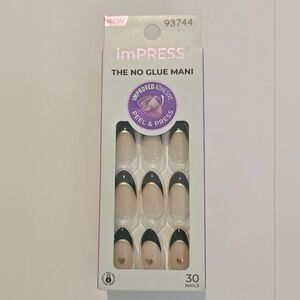 NWT imPRESS Press-On Nails Medium Almond French Black Gold Pink Heart