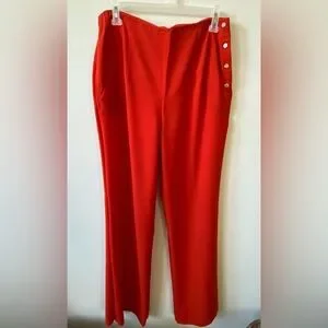 Bold red wide leg pants with button detail. Perfect for a stylish look.