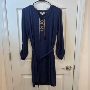 Michael Kors Deep Blue Lace-Up Long Sleeve Dress