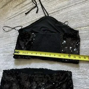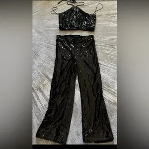 NWOT House of Harlow 1960 Halter Neck Crop Top Pants Set Black Sequin S