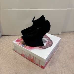 Brand new in box black suede Jeffrey Campbell night walk shoes size 7. Very comfortable and unique shoes. Never been worn.