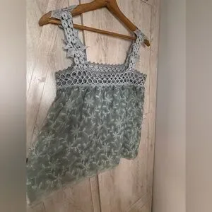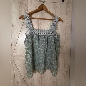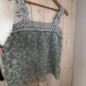 POL Green Floral Lace Strap Tank Top – Size S