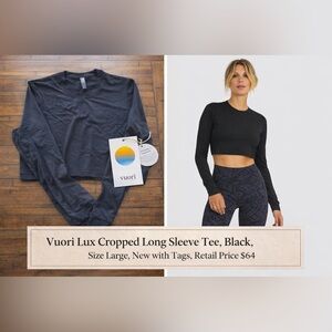 Vuori Lux Cropped Long Sleeve Tee Black Size L NWT