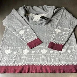 Torrid Gray and Burgundy Off-the-Shoulder Sweater flaws New Size 2X Disney Belle