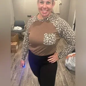 Zenana Mocha leopard soft long sleeve tee with front pocket. Leggings friendly. I am wearing a small and with my larger arms/biceps, small shirts normally don’t fit me but this shirt fit great! This is definitely tts. Never worn. Boutique item.
