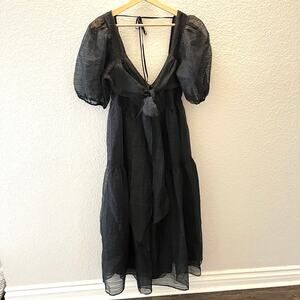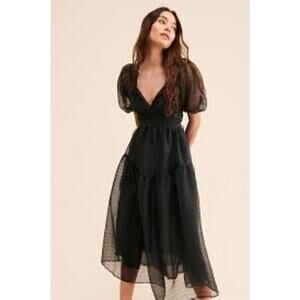 NWT Free People Hailey Puff Sleeve Sheer Midi Dress Black Size 12 $168 Romantic