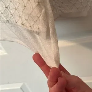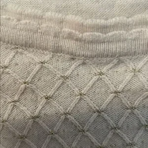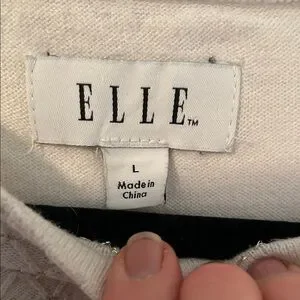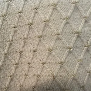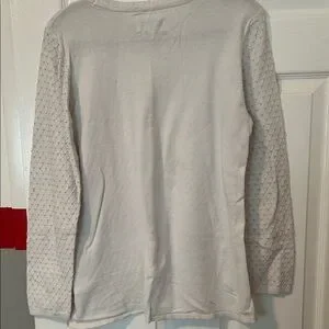 Elegant cream sweater with textured design. Crew neck style. Perfect for layering. It is high/ low in back