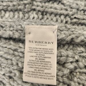 Stay cozy and stylish with this Burberry marino Wool Women's Gray Knit Sweater. Perfect for layering, this sweater features a classic knit design and a comfortable fit. Includes belt.