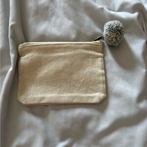 Cream canvas pouch featuring an inspirational quote. Perfect for daily essentials. Has cute pompom on the zipper end. In great used condition, no flaws or damage to note.