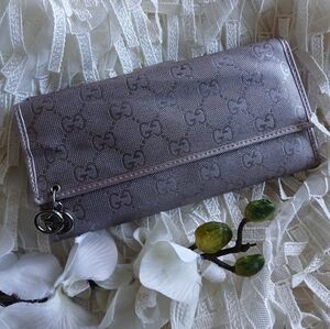 Elegant authentic Gucci women's wallet in a sophisticated metalic light lilac color. Perfect for organizing your essentials with style.