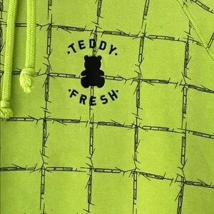 Teddy Fresh Barbed Wire Pullover Hoodie in Lime Green Black Men's Large