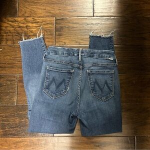 Chic ankle-length jeans with a distressed hem. Perfect for casual outings. Stylish and comfortable.