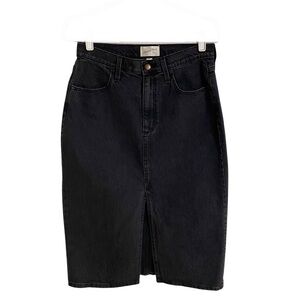 Universal Thread black denim high-waisted midi front slit skirt size 8