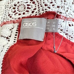 ASOS Mini Dress Floral Size 10 Crochet High Neck Open Back Red Orange Coquette