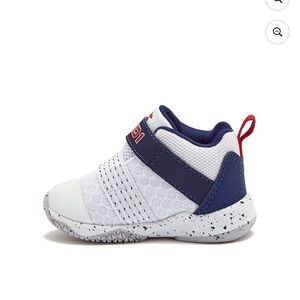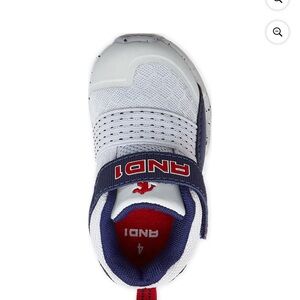 Stylish AND1 brand sneakers with a navy and white design. They’re hightops. Perfect for active kids. Durable and comfortable.