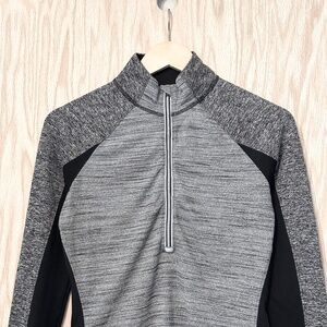 Athleta Women’s Running Wild 1/2 Zip Long Sleeve Pullover Jacket in Heathered Gray and Black
