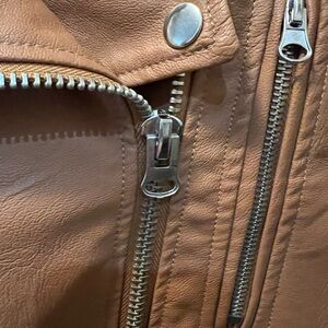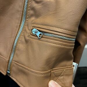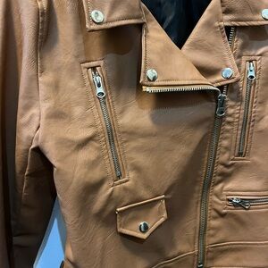 Chocolate USA Tan Faux Leather Moto Jacket – Size M