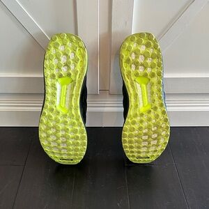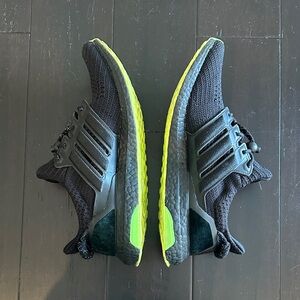 Created in partnership with Beyoncé's activewear brand, the Ivy Park x adidas UltraBoost 'Black Hi-Res Yellow' treats the lifestyle runner to a sleek makeover. Drawcord lacing secures a blacked-out Primeknit upper, fortified with a leather midfoot cage and a molded heel counter stamped with Ivy Park branding. The lightweight build sits atop a matching black Boost midsole, contrasted by a Continental rubber outsole in a neon yellow finish. Very good condition - worn once or twice! Includes original box, tags and accessories!