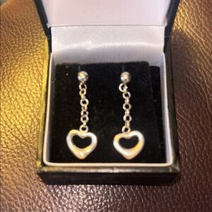 These chic silver heart chain earrings bring a stylish flair to your look. Ideal for both casual and formal occasions.