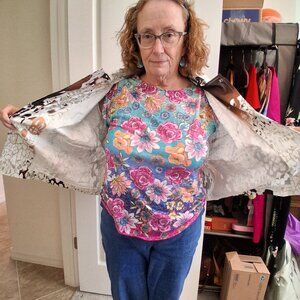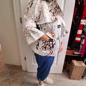 JUST B Lightweight Abstract Print Button-Down Shirt Jacket Multi-Color Size Large