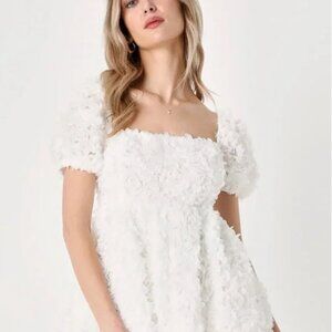 Precious Passion White Floral Puff Sleeve Babydoll Dress