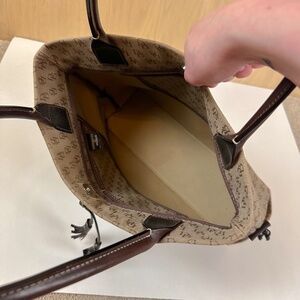 Dooney & Bourke tote, DB monogram bag, designer shoulder bag, brown leather tote, everyday carryall, tassel tote, preppy style, classic handbag, work bag, Dooney and Burke, Dooney & Burke, Dooney Burk, Dooney & Borke, Doonie & Bourke, D&B tote