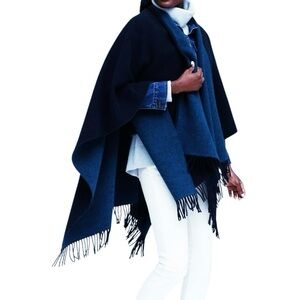 Banana Republic Reversible Double Faced Poncho Navy NWT OS Ruana Wrap Fringe