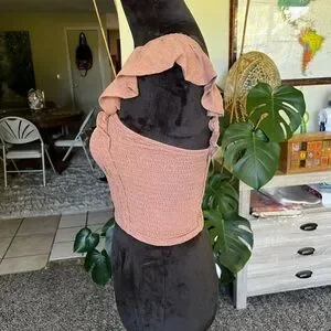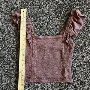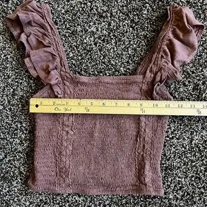 Elevate your style with this chic women's top featuring ruffled sleeves and a smocked design. Perfect for any occasion. 60% cotton, 40% rayon.