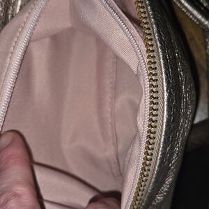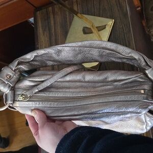 Coach Parker shoulderbag Style# M0869-13465 2008. $399 retail. Metallic Rosegold pebbled leather. Gold hardware. Light pink fabric lining. Has original hangtag. No rips, tears or stains to exterior leather. Fits comfortably on shoulder. Purse measures approximately 14 inches across by 7 inches high and 5 inches wide. Shoulder strap drop is approximately 10 inches. No rips or tears in lining. Call outs: few minor marks/spots on lining. Faint fragrance. Gently preloved bag never carried by me. Comes from smoke free and cat friendly home. Accepting offers and counteroffers!