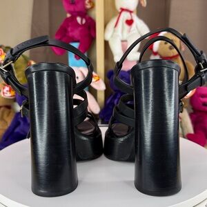 Experience true luxury and edgy style with these iconic Saint Laurent platform sandals! From the Fall '22 runway, these statement heels are designed to turn heads.