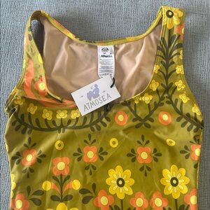 NWT Free People x Atmosea Meadow Surf retro floral boy short Bodysuit, Size M. Mark in brand tag to prevent retail return. Hygienic liner still in place. New with tag!