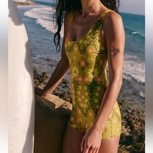 NWT Free People x Atmosea Meadow Surf retro floral boy short Bodysuit, M